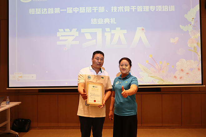 活动现场,公司副总经理给我们本次参训的学员们颁发培训结业证书,学员们振臂高呼“我们结业啦!”。培训过程中,还涌现一批培训优秀学员,经过评选,王董事长给本届6名学员授予“学习积极分子”、“优秀学员”“学习达人”等荣誉称号,并授予奖牌,鼓励他们再接再厉。