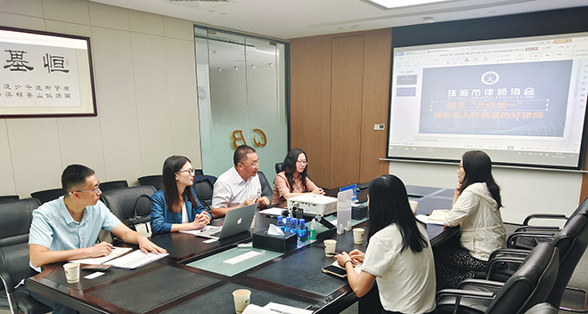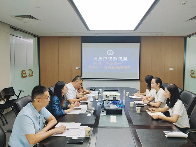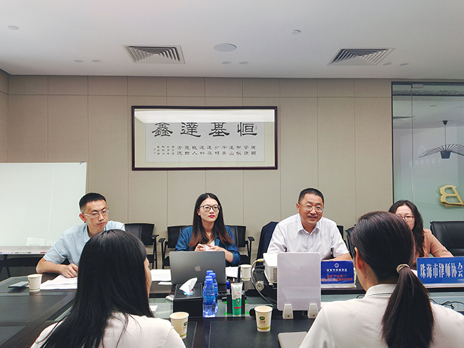 2022年9月19日上午,珠海市政协社会和法制委科长徐志勇、珠海市律师协会副会长占亮律师、珠海市律师协会理事林娜儿律师、珠海市律师协会企顾委秘书长杨楚敏律师一行莅临我司开展企业法治体检活动,公司副总经理朱海花参加了本次活动,双方就“法治体检”活动进行了交流座谈。