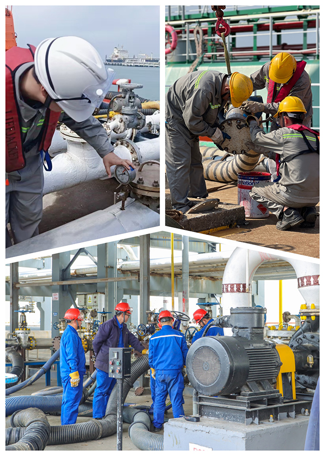 迎着风,码头操作员穿梭在管廊与码头间,检测仪紧贴阀门接口,这是他们除夕当天的第N轮巡检。“节日标准只高不低,听运转声、摸管道振动、核仪表数值,都是必修课。”物料特性与巡检要点早已刻在心中,他们的脚步,丈量着设施安全,守护着客户信任。