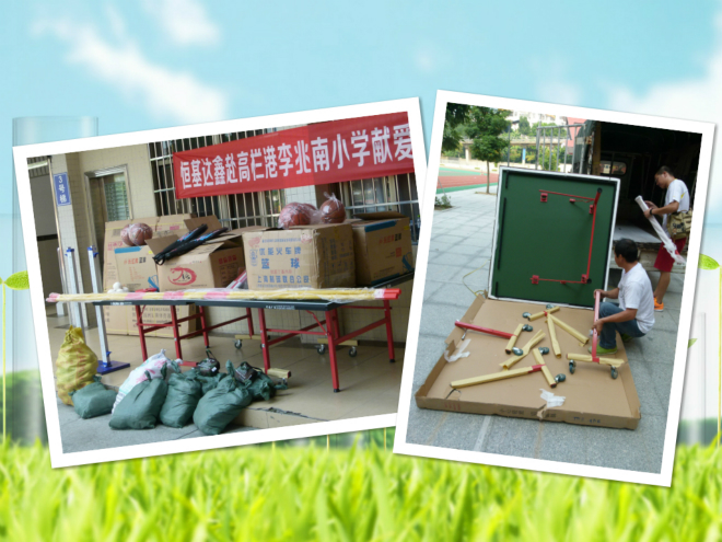 10月16日,恒基达鑫派出管理团队代表赴珠海高栏港经济区李兆南纪念小学献爱心,为学校即将召开的2015年度学生运动会和体育教学捐赠了一批体育器材及用品。