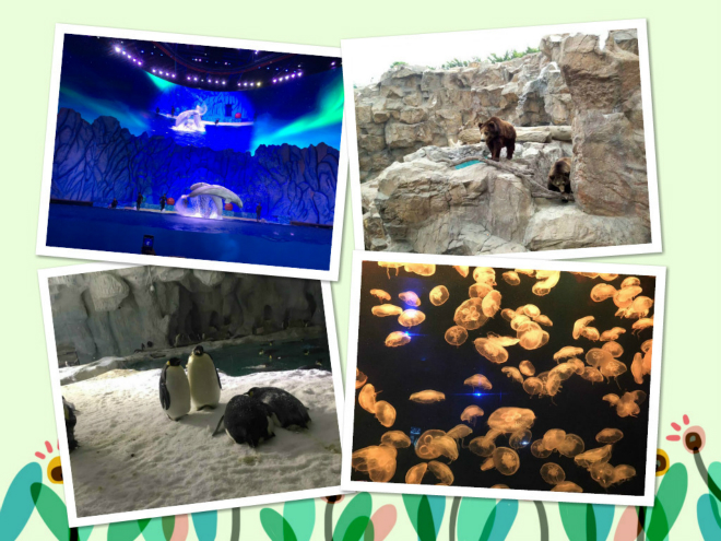 进入园区后,一幕幕精彩的海洋动物剧场表演,引得全场观众喝彩。可爱的海豚一会儿在水中游摆各种造型,一会儿在饲养员指令下飞跃起来跟我们热情地打招呼。除了海豚,还有各种各样的动物朋友,如白鲸、鲨鱼、企鹅、海狮、北极熊等等。中午时分,我们来到世界最大的海洋鱼类展览馆—海洋奇观展馆,海洋奇观内饲养有不同品种的珍奇鱼类多达15000条,视界壮阔,带来无敌海底奇观。当然除了动物,这里还有各种机动游戏,让我们体验到空中自由翱翔的快感和刺激。