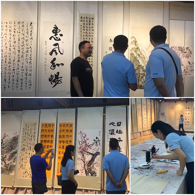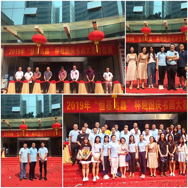 翰墨抒怀,献礼祖国。在全国上下喜迎新中国70华诞之际,由公司冠名联办的“迎国庆·向祖国献礼——庆祝新中国成立70周年‘恒基达鑫杯’书画展”在珠海市总工会举行盛大开幕仪式,公司总经理为开幕仪式致辞。现场作品笔精墨妙,灵动潇洒,赏心悦目,抒发着作者的爱国情怀,描绘了人民奋进新时代,迈上新征程的壮丽蓝图。公司职工们满怀喜悦地欣赏着优秀的书画精品,不仅陶冶大家的情操,展现文明健康、乐观进取的精神风貌,还能加强了大家交流互动,提升艺术欣赏水平。公司高管带头挥毫泼墨,一展书法风采,书写对祖国的美好祝福。