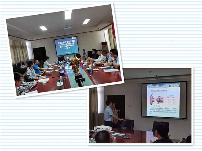 当天,还开展了关于2020年度产学研合作项目总结暨2021年度产学研项目的交流会,广油学院魏博士与公司研发部技术人员对2020年度产学研合作RD45项目装置的性能及运用等方面进行了回顾和分析,研发部同事积极参与讨论和总结;此外,结合公司性质、所处地理位置、生产工艺流程等设备设施防腐、保温等技术难点、解决方案进行了一系列的讨论,公司在场人员受益匪浅,对2021年研发项目有了明确方向和目标。最后,双方就2021年度产学研项目形成了合作意向,会议在此圆满落幕。