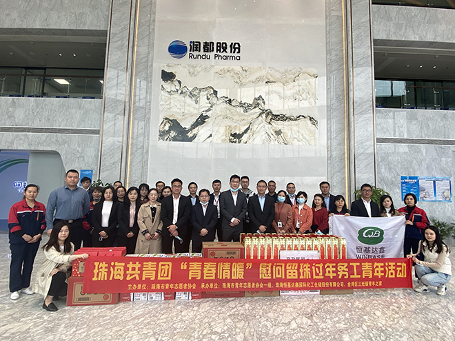 为统筹推进疫情防控,支持企业稳岗稳工,积极响应留珠过年倡议,同时为坚守珠海岗位的异地务工青年送上关心和慰问。春节前,珠海市青年志愿者协会举办慰问留珠过年务工青年活动。团市委副书记林晓军、公司总经理兼市青志协常务副会长张辛聿一行10人前往珠海一制药公司开展慰问留珠务工青年活动。