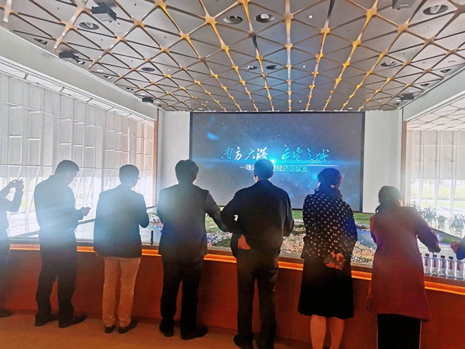 下午,珠海经济开发区党工委委员、开发区管委会副主任邓剑虹带领苏书记一行与我司领导一同前往高栏港经济区规划展览馆,通过沙盘区展示向各位详细介绍了高栏港经济区的发展现状及未来的规划,透过展厅立体画面,能够切实感受到高栏港经济区土地、产业发展现状及未来城市建设成果,邓主任表示,高栏港经济区的不断发展,离不开企业的创新发展,企业发展和园区升级互促共赢。