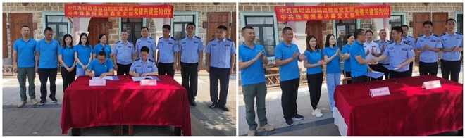 下午,为深入推进“四强”党支部建设,探索基层党支部互帮互助机制,构建基层党建工作新格局,促进中心工作圆满完成。恒基达鑫党支部与高栏边检处党支部举行了党建共建签约仪式,马德平书记和陈子红书记作为代表签订了党支部结对共建工作协议书,为党支部的进一步发展奠定了坚实的基础。