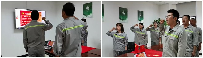 武汉恒基达鑫党支部书记带领公司全体党员践行入党誓词,铿锵的誓词响彻了每一个角落,更加坚定了每一名党员的理想信念。
