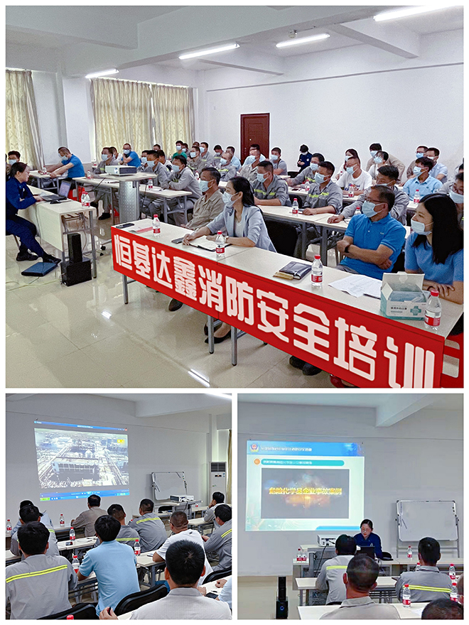 6月30日,我司邀请珠海市消防救援支队特勤大队莅临开展易燃易爆危化品企业消防安全培训,公司主要负责人邹郑平、副总经理朱海花、库区总监陈子红及当班员工共计40余人参加了此次培训活动。培训课上,授课老师向参训人员认真讲解了易燃易爆危险化学品火灾事故的特征、危害性,深刻剖析了火灾事故引发的原因及预防措施,同时就不同类别危险化学品火灾的扑救方法、企业如何开展消防安全工作及火灾初期应急逃生常识等方面的内容进行了详细的讲解。