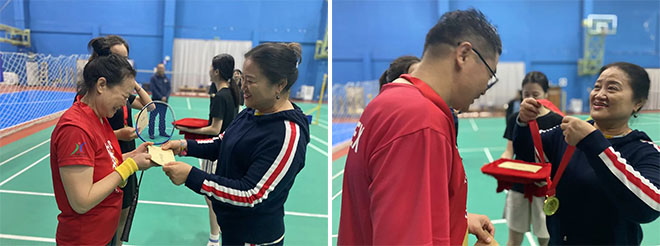 精彩的比赛轮番上演,伴随着现场此起彼伏的欢呼声,最后,经过三个小时的激烈角逐,冠军选手诞生。公司董事长王青运女士为羽毛球、篮球夺冠的选手们颁发奖牌、奖金,同时,王董事长为此次比赛致闭幕词,宣布比赛圆满结束。
