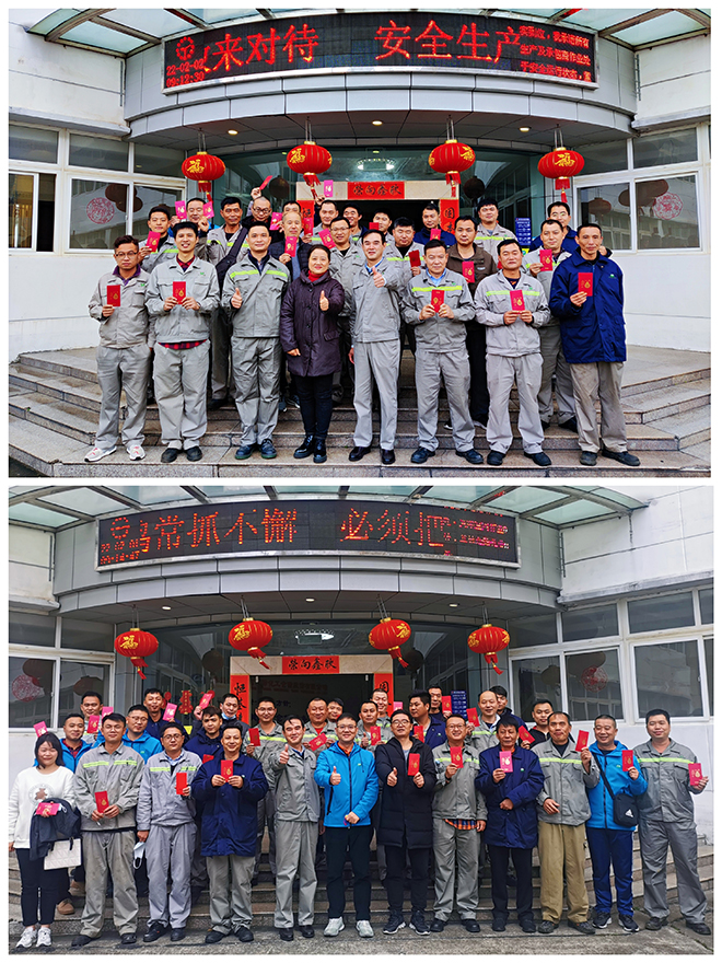 春节假期,公司准备了丰厚的留珠在岗暖心奖励,公司董事长王青运女士及总经理张辛聿先生也亲临生产现场,对于春节期间留守岗位的员工进行慰问与鼓励,感谢他们尽职尽责、坚守岗位。