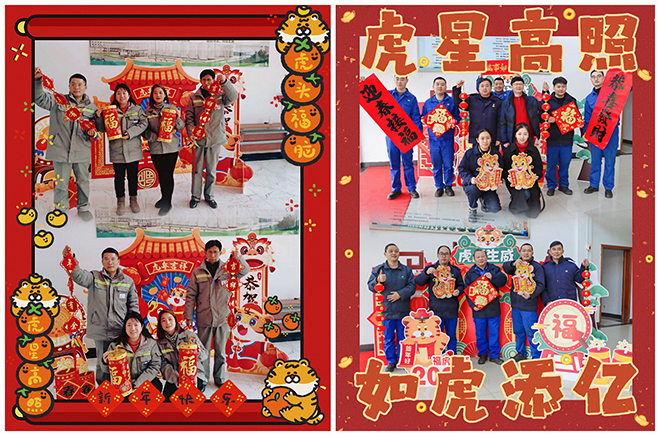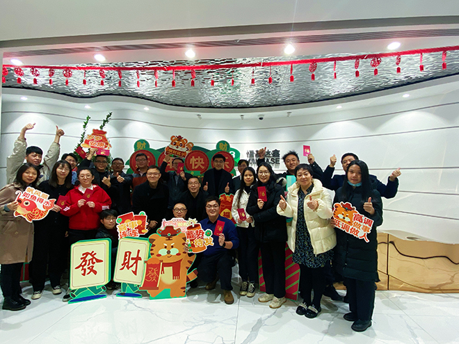 1月30日,珠海、扬州、武汉三地行政部小伙伴们早早就装饰起办公楼,对联、窗花、福字,“虎元素”的展板,红红的灯笼高高挂起,到处营造浓浓年味。三地公司人员纷纷合影,一起迎接虎年的到来。