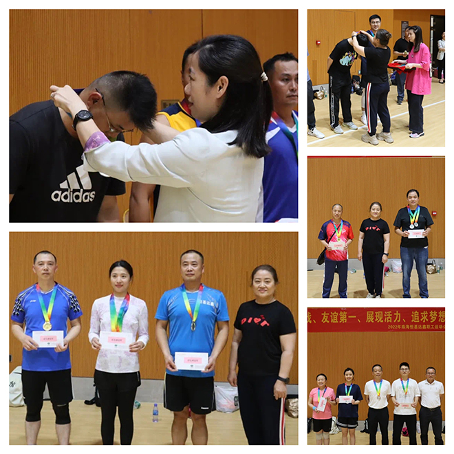 经过一下午的激烈角逐,公司董事长王青运女士、副总经理朱海花女士、副总经理陈子红先生分别给勇夺冠、亚军的运动健儿颁发奖牌及奖金。王董事长表示:本次比赛选手们充分地展示出恒基达鑫人“团结、奋进、拼搏、进取”的体育精神,选手们在赛场上充分挥洒汗水,展示自我,勇争第一的团队精神值得大家学习。