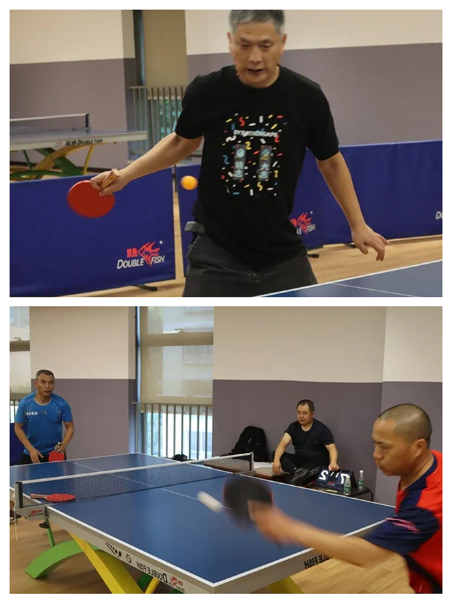 兵兵球赛场上,同样气氛活跃激烈,各参赛队员们全力以赴,大力扣杀、对拉弧圈、飞身救球等一系列精彩的对打迎来了同事们的阵阵掌声和欢呼声。