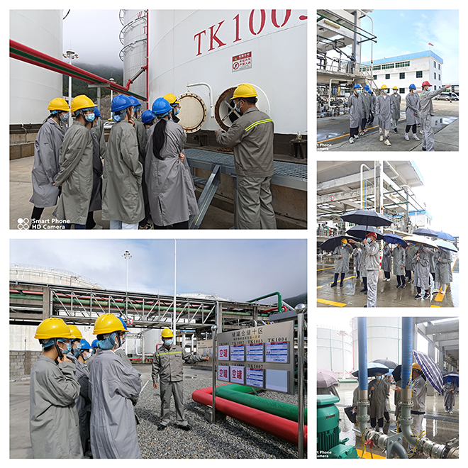经接受安全培训后,由我司生产技术部经理带领学生到公司码头、10区储罐区实地参观见习,具体讲解公司的工作环境、化工仓储生产工艺流程以及生产作业过程,让学生对专业工作有更直观的认识与感受。在交谈中,学生结合自身专业知识对现场生产工艺提出各种问题,生产部经理现场一一详细解答。