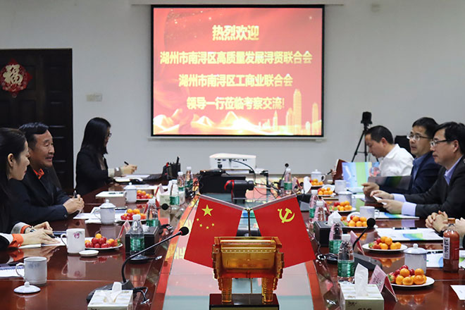 2月27日,浙江省湖州市政协经济委副主任、南浔区区高质量发展浔贤联合会会长孙根祥,湖州市南浔区人大常委会副主任、区工商联主席潘宇文,南浔区统战部常务副部长、区工商联党组书记石增中等领导一行莅临我司考察交流。公司副经理邹郑平等领导参与了考察交流活动。