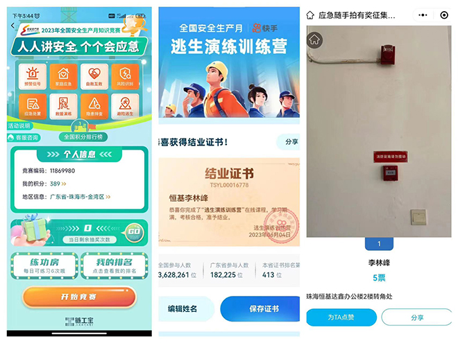 根据“安全生产月”活动方案,各部门组织员工参与2023年全国安全生产月知识竞赛、应急随手拍等各项安全月线上活动,形成人人学习安全知识的良好氛围。