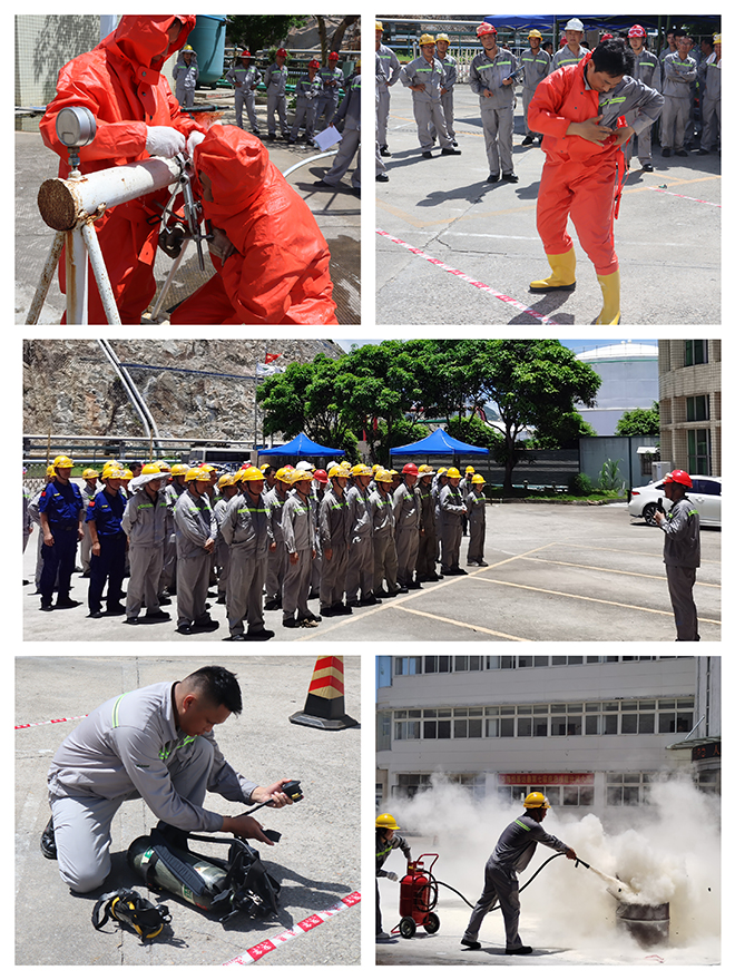 6月20日,公司在库区办公楼区域举办了“珠海恒基达鑫第七届应急技能比武大赛”,竞赛项目有“油盆火扑救”“防护服穿脱”“空气呼吸器穿戴”“管卡堵漏”,公司各部门员工积极参与。
