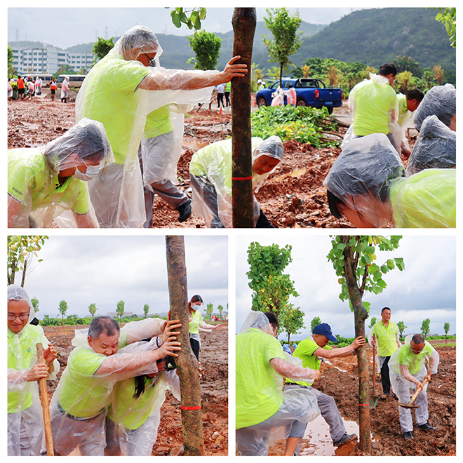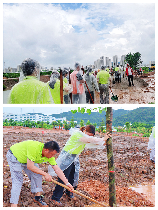短短一个多小时,在众人的齐心协力下一棵棵树苗在雨中傲然挺立,面对汗流浃背,满身泥水的自己,再望向新添的一片“绿意”,大家相视而笑,这就是恒基达鑫人挥洒汗水辛勤根植下的“绿色希望”,是用实际行动践行绿色发展的成果。