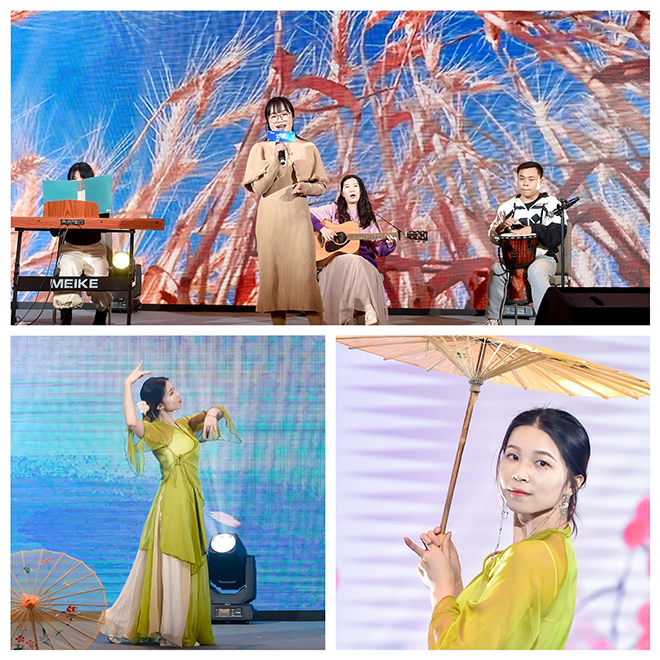 除了优秀的工作能力,恒基达鑫员工更展现出丰富多彩的才艺。由多部门联合演出的弹唱《风吹麦浪》,让现场感受到原来生活不止诗和远方,还有硕果累累的金色麦浪。接着,安环部员工带来的独舞《哢春生》,更是把古风独有的雅致意境展现得淋漓尽致。