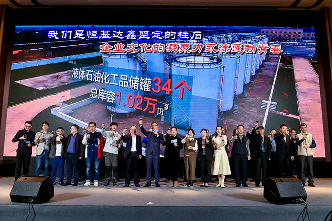 年会伊始,公司董事长王青运女士致辞,对现场嘉宾、全体员工表达衷心感谢。2023,在全球经济的不断变化,恒基达鑫全体员工牢盯年度任务目标,总体保持了稳健运营的良好态势,加强产业链合作,积极开辟石化仓储产业链发展的新领域。2024,恒基达鑫将继续发扬优良传统,怀着感恩之心,奋发向上,以更加强烈的事业心和责任感,朝着既定目标,阔步前行。