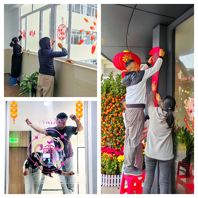 为打造舒适温馨、整洁安全的工作环境,进一步提升员工幸福感和企业形象,公司办公楼翻新装修工程顺利竣工。恰逢春节临近,特开展一系列“年味”十足的迎新春活动:大扫除、新年装饰和安全大检查。经过恒基达鑫人的齐心协力,让办公楼内外部焕然一新,“唤”出满满幸福感。 新春将至,辞旧迎新。春节前,恒基达鑫全员上阵,对办公室进行了彻底的清洁和装扮,擦窗、扫地、浇花、贴福字、挂灯笼……确保清洁和装饰全覆盖。