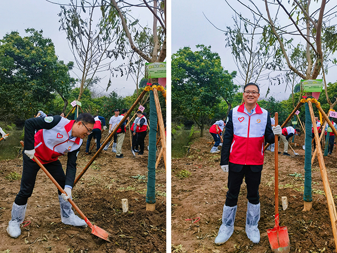 人勤春来早,植绿正当时。随着春天的到来,3月14日下午,在广州海珠国家湿地公园迎来了一场充满生机与活力的绿色盛会。广东省青年企业家协会副会长、公司董事总经理张辛聿先生受邀参与由广东省青年企业家协会举办的“绿美广东·青企在行动”植树活动。
