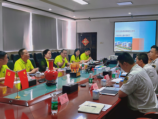 珠海海事局副局长温光富,珠海海事局危防处处长吴敏,珠海港口海事处处长许岩松,珠海港口海事处副处长蒋奕,珠海海事局港口海事处南迳湾执法大队队长杜荣耀等领导,以及公司董事长王青运,党支部书记、库区总经理陈子红,库区总监樊强等人员共同出席活动。